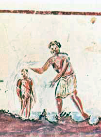 Dans sa forme primitive, le christianisme n’était pas un état d’être mais un état de devenir; une transition et, littéralement, une traduction. Il en découle que l’identité du chrétien est dans le sens qu’il a de son propre devenir: il est devenu ce qu’il n’était pas auparavant; et, sauf dans certaines communautés extrêmes de montanistes et de novatianistes, qui ne permettaient aucune pénitence après la première pénitence toute-consumante du baptême, il continuera, paradoxalement, à devenir; il continuera à rechercher la proximité avec Dieu, la similitude qu’il a acquise rituellement, mais pas finalement, dans le baptême. Cela ressort des paroles d’Ambrose à ceux qui viennent d’être baptisés: « vous avez été marqué de l’image (forma) de sa croix, de l’image de sa passion; vous avez reçu le signe (signaculum) que vous puissiez porter sa ressemblance (similitudo), que vous puissiez vous élever à son image (forma), que vous puissiez vivre le symbole (figura) de celui qui a été crucifié pour le péché et a vécu pour Dieu ». Viva figuram: le signe rituel du baptême. . ., aussi complet en soi est-il, ne peut être accompli en dehors du rituel que par la vie morale qui suit. [Cramer, Baptism and change in the Early Middle Ages, 47]