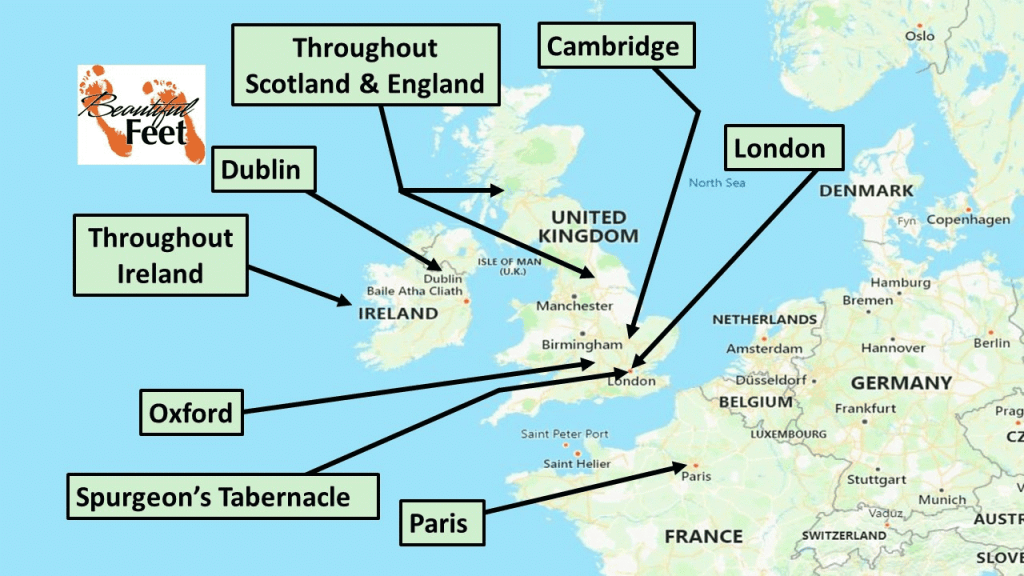 Quelques-uns des lieux où D.L. Moody a prêché en Europe