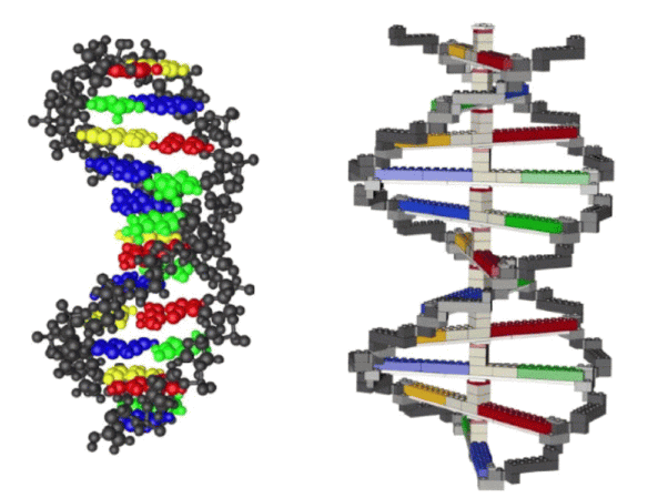Imaginez faire une structure en légos, pour former deux colonnes qui tournent sur elles-mêmes, et dans laquelle s’emboîtes les variantes. 3.3 milliards de pairs, qui doivent toutes s’emboîter comme il faut, sans faire défaut pour faire un tout bien ordonné. Ça en fait un sacré casse-tête.
