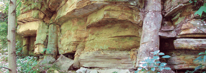 « Par la roche dans lequel on trouve les fossiles ».