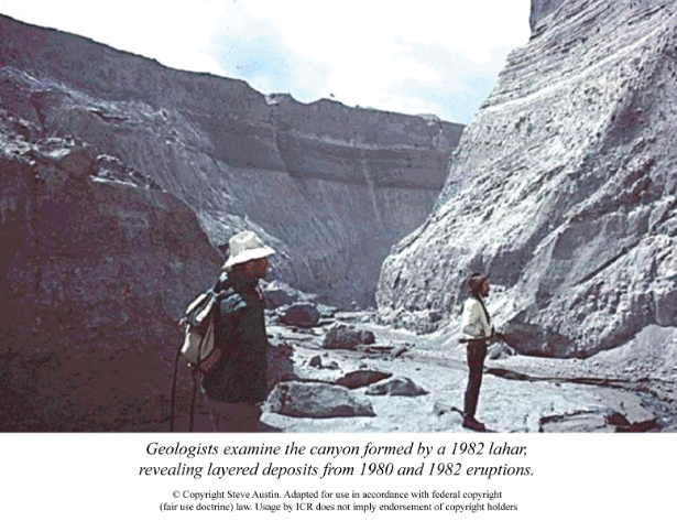 Toutes les strates ont été posées en relativement peu de temps, et le canyon sculpté à travers les strates assez rapidement, quand c’était encore relativement mou, comme il s’est fait en 1980 au Mont-St-Helens.