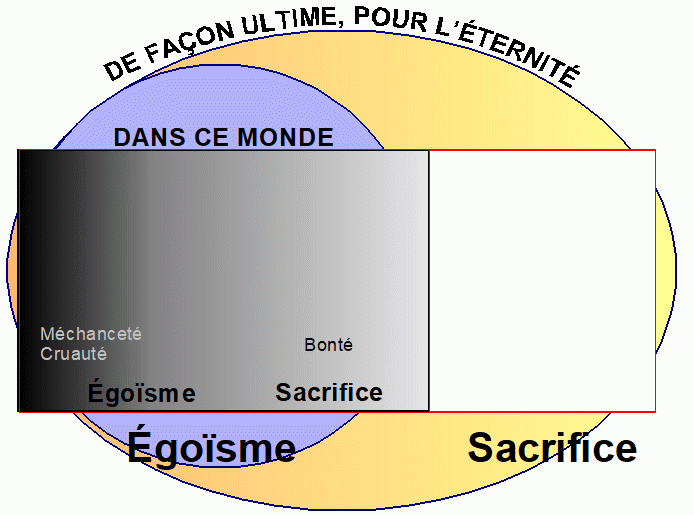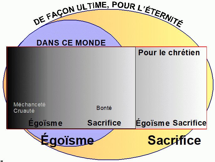 Mais, maintenant, il y a un égoïsme relatif, par degré, une application à divers degré des principes d’égoïsme et de sacrifice appliqué au chrétien dans ses choix dans sa manière de vivre.