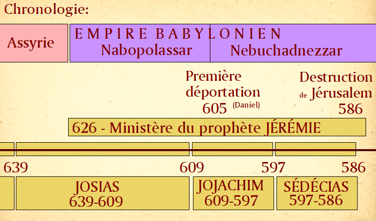 Dans quel contexte Jérémie a-t-il été appelé ? Dans le contexte du Royaume de Juda qui multipliait ses péchés, et à qui Dieu voulait envoyer Jérémie pour les appeler à se détourner de leurs péchés, pour revenir à leur Dieu. Autrement, il y aurait la fin du Royaume, la destruction du Temple et de Jérusalem, et un exil à Babylone.